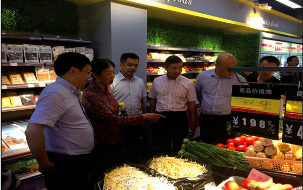 省社黨組成員機關黨委書記周敏泉和四川省農產品經營集團董事長總裁楊燦明在公司城市生活店調研